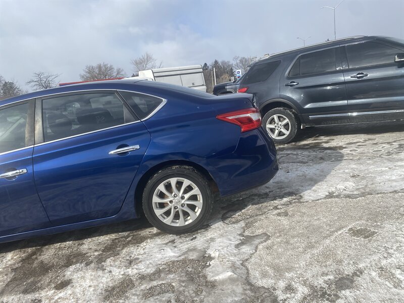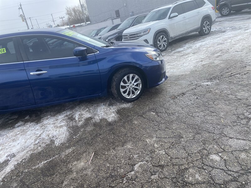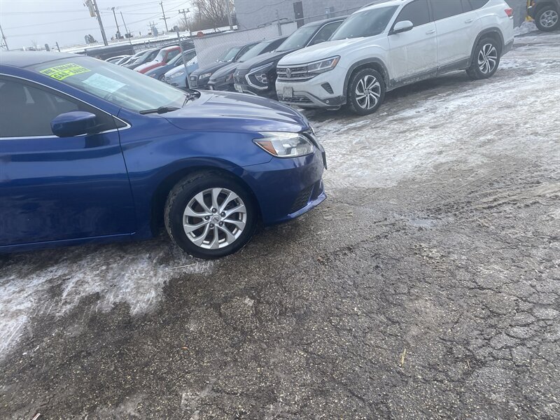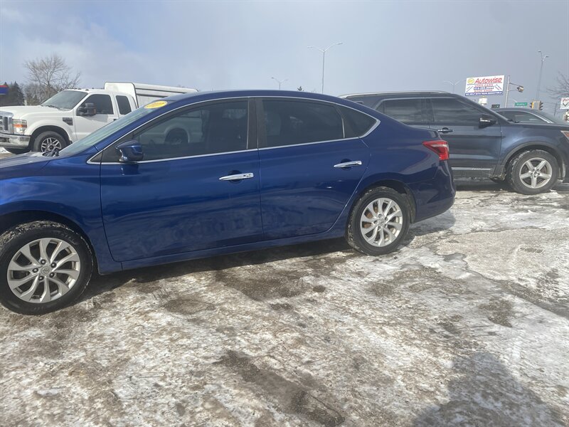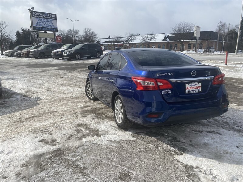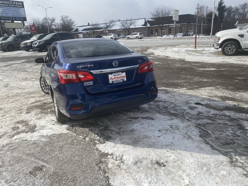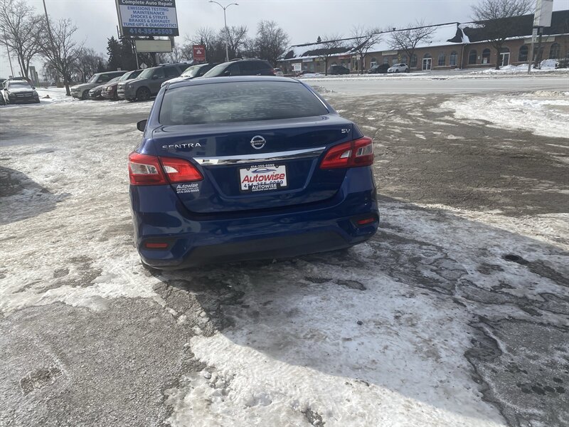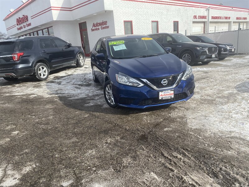2017 Nissan Sentra S — powered by a 1.8L I4 (130 hp, 128 lb-ft) with an Xtronic CVT; EPA-rated 27 MPG city / 35 MPG highway. Factory-standard equipment includes ABS with electronic brake-force distribution, traction control and vehicle dynamic control, dual front airbags plus front-seat side-impact and side-curtain airbags, a rearview camera, remote keyless entry, power windows and door locks, air conditioning, cloth seats with manual adjustments, a tilt-adjustable steering column with cruise and audio controls, an AM/FM audio system with Bluetooth hands-free and USB/aux inputs, halogen headlights and 16-inch steel wheels with covers.