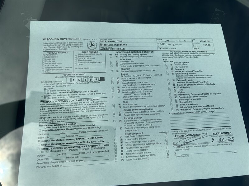 - Front wipers: rain sensing, speed sensitive, variable intermittent